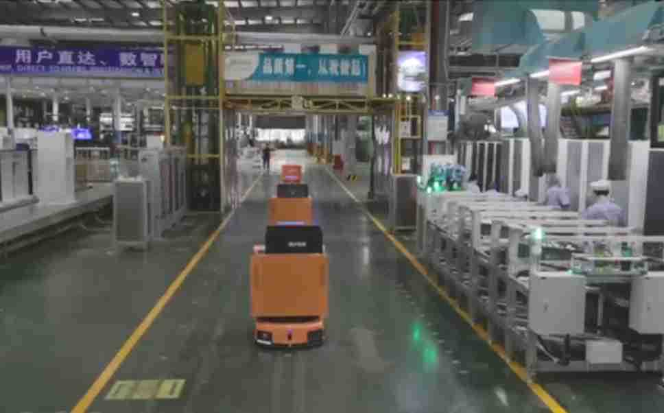 为车载冰箱物流配送打造的智能解决方案,,,,包含产中物流通过潜伏举升AMR搬运至线边,,,产后成品物流智能仓储,,流程包含产中物流智能齐套入库,,,,线边安灯叫料AMR智能配送至线边,,,成品入库、、、、出库,,通过无人堆高车机器人,,,,智能仓储管理替代人工作业管理,,,,实现更高存储、、、、更高效率、、、更具柔性化的解决方案。。。。